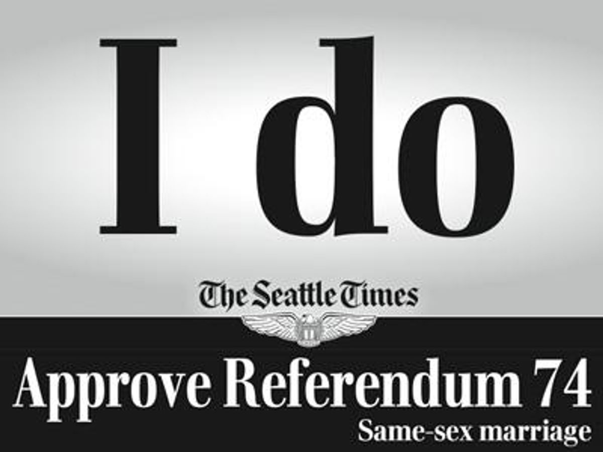 The News Tribune, which serves Tacoma and Pierce County, just south of Seattle, kept the rhetoric simple in its editorial endorsement for Referendum 74: "Why [Washingtonians] should vote yes can be summed up in one word. Equality."