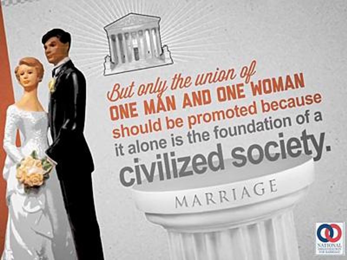 In the video below, a British narrator explains why the government can promote, permit, or prohibit certain actions, so when it promotes "natural marriage" (which she claims even lowers the national deficit), goverment merely permits other relationships (like same-sex couplings) and prohibits others (like incest) it's all with good cause, because there is absolutely no benefit to society in extending marriage rights to gays.