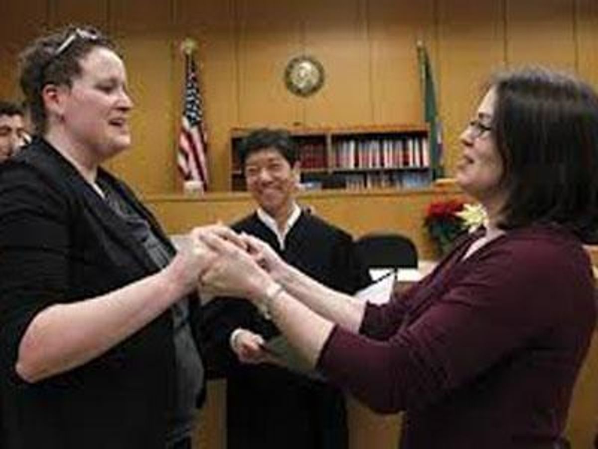 The wedding day followed the usual, mandatory three-day waiting period after obtaining licenses. Then, Emily and Sarah Cofer were the first to wed, according to USA Today. Superior Court Judge Mary Yu married the couple, both third-grade teachers, in Seattle at 12:04 a.m. with their nine-month-old daughter Carter present. The judge and her staff members, who had volunteered to work overnight, had 12 weddings scheduled through 7:30 a.m. Sunday.