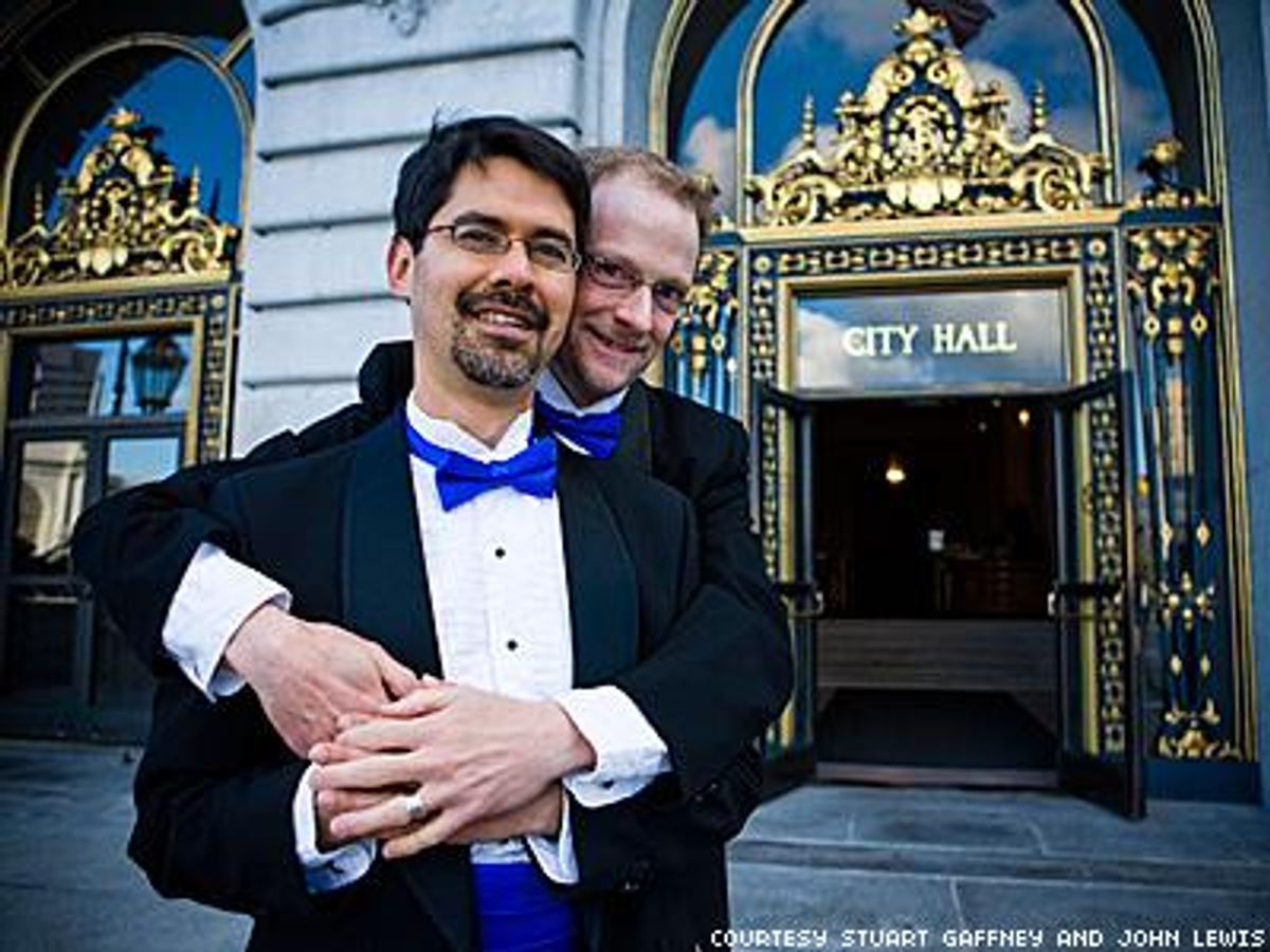 When California resident John Lewis proposed to Stuart Gaffney nine years ago, "It was the most urgent wedding proposal you've ever heard," recalls Gaffney.