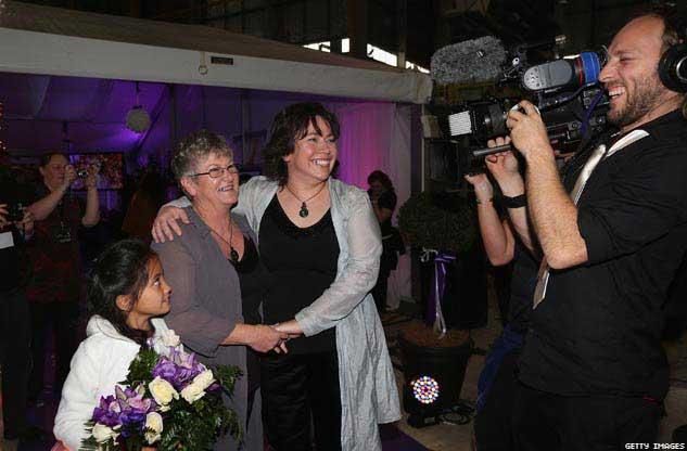 NEW ZEALAND -- Lynley Bendall and Ally Wanikau of New Zealand seem to prefer intimate moments. Besides, the quiet couple of 13 years are raising three sprightly children, leaving little time or energy to plan for the pomp and circumstance of a large wedding. But their modesty and humanitarian spirit was what won them a very public wedding ceremony on an Air New Zealand flight from Queenstown to Auckland. Wanikau and Bendall were among the first same-sex couples to legally marry in New Zealand starting Monday, and they were definitely the first to be wed in the Kiwi skies.