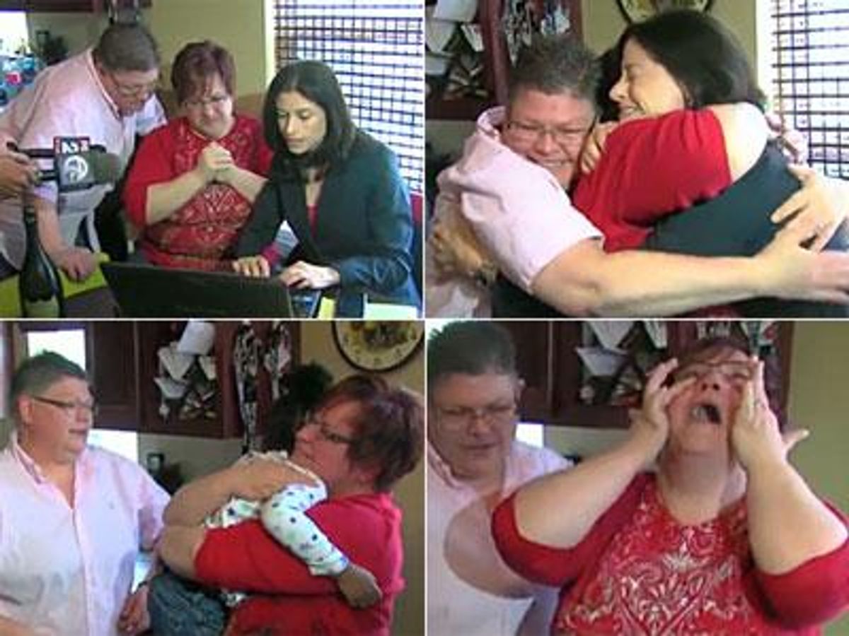 Detroit ABC affiliate WXYZ was there to capture the moment at the couple's kitchen table as their attorney, Dana Nessel, read portions of U.S. District Judge Bernard Friedman's decision finding that Michigan's voter-approved constitutional amendment forbidding same-sex marriage violated the U.S. Constitution.