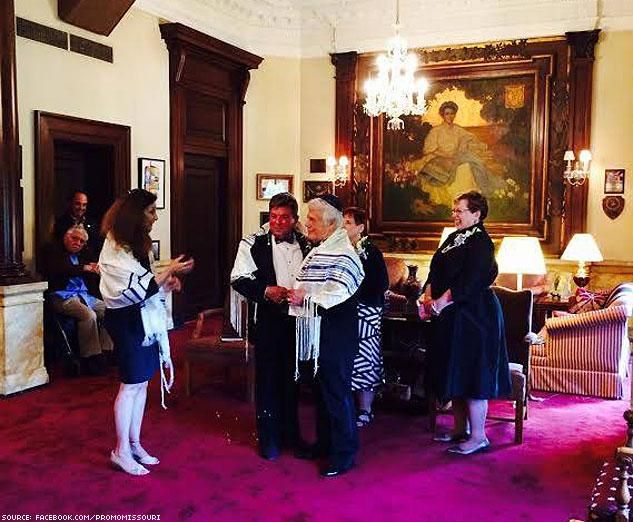 But this morning Missouri attorney general Chris Koster filed suit in St. Louis Circuit Court to prevent the city from issuing any more licenses to same-sex couples, and city officials agreed they would not to do so without notifying the court and the attorney general's office, the Associated Press reports. Koster, a Democrat who plans to run for governor in 2016, says he personally supports marriage equality but must do his duty to enforce state law. The current governor, Jay Nixon, has said he also supports equal marriage rights but thinks the ban should be repealed by voters rather than through the court system. The American Civil Liberties Union filed suit in February seeking marriage recognition for Missouri same-sex couples who were wed in other states.