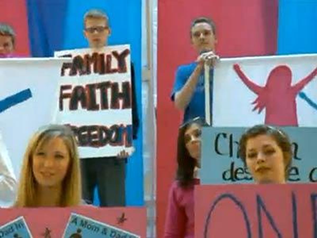 "This child has a mother," organizer Mary Summerhays told the crowd, according to the Tribune. "These are the faces of the children who will pay the price of redefining marriage."