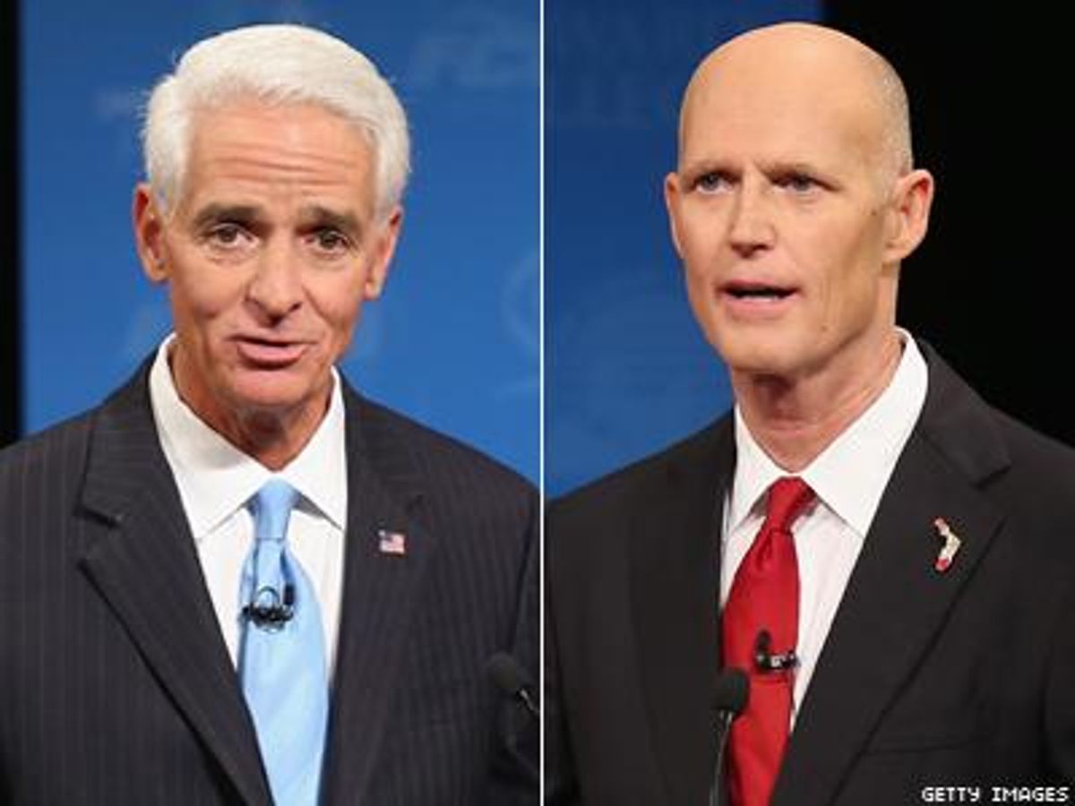 Governor Rick Scott at first refused to come on stage during the live televised debate because he claimed the rules banned candidates from using electronics, including fans. Challenger Charlie Crist had taken his personal fan to the podium to keep cool. Eventually Scott caved and joined Crist on stage. That's the first thing everyone knows about that debate.