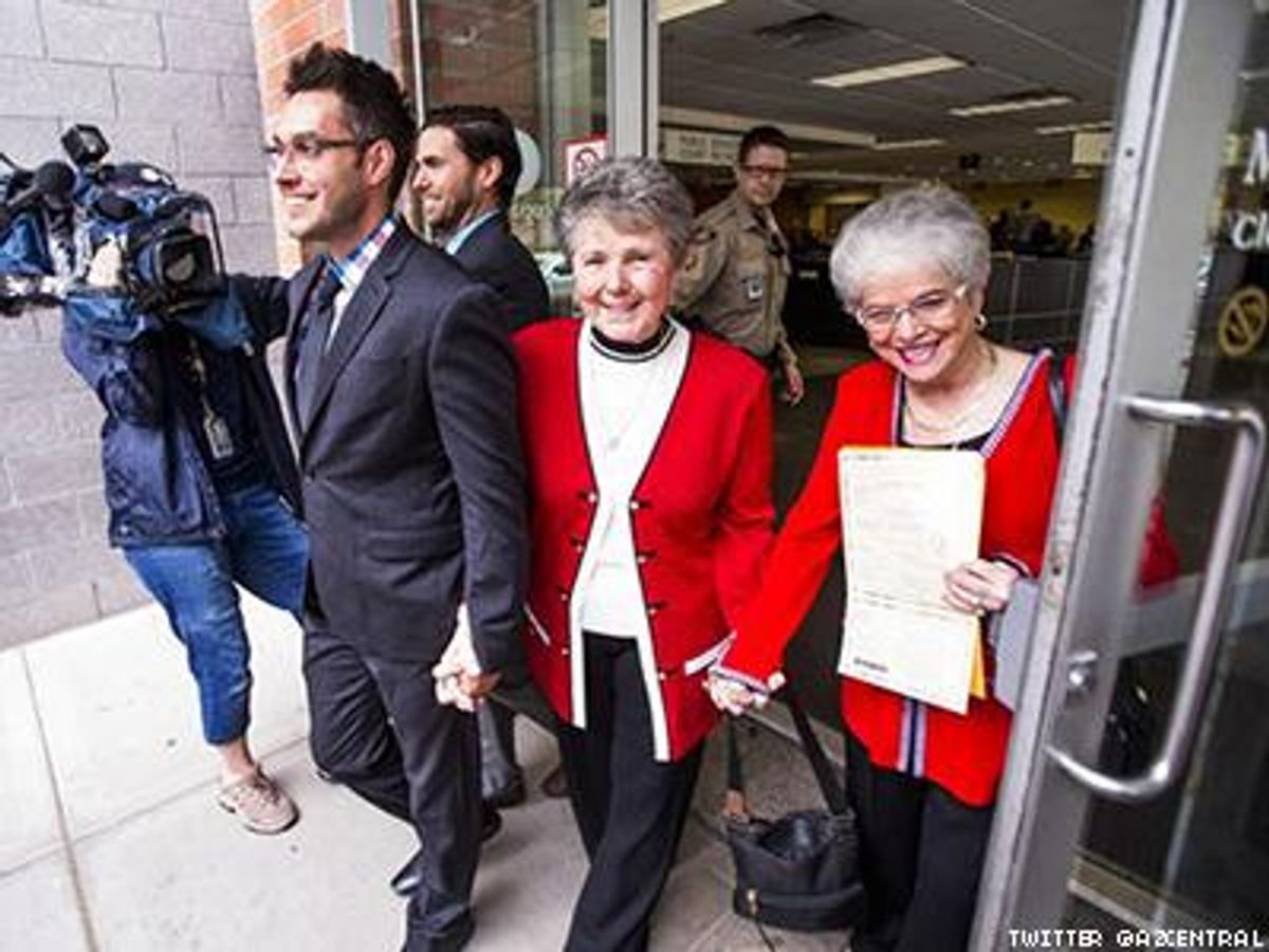 \u201ccc: @GovBrewer MT @MarkJRemillard: Karen Bailey & Nelda Majors hold their marriage certificate after waiting 57 years\u201d— Anthony Michael Kreis (@Anthony Michael Kreis) 1413574471