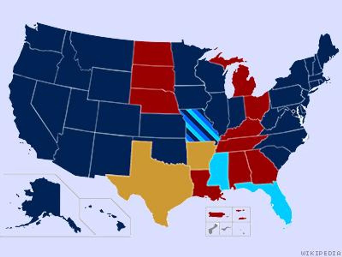 Meanwhile, things are a bit simpler in neighboring Mississippi, but time is of the essence. A federal judge found the state's ban unconstitutional last week, and the state has already announced its intent to appeal. They parties in that case are likely to move quickly, because the Fifth Circuit Court of Appeals has already scheduled oral argument for two other marriage cases on January 9, 2014. Those cases originated in Texas and Louisiana.