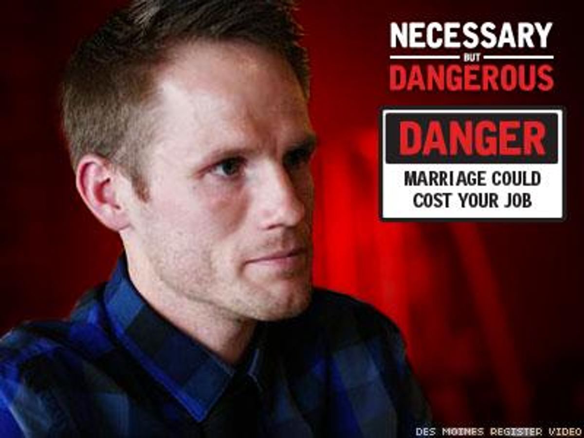 McCubbin's case, reported in The Des Moines Register this month, is just the latest example of what might be characterized as an unintended consequence of marriage equality -- religiously affiliated institutions firing or deciding not to hire people who are engaged or married to a same-sex partner. In some cases these people are longtime employees whose homosexuality becomes an issue to their bosses only when they make a "public declaration" by marrying.