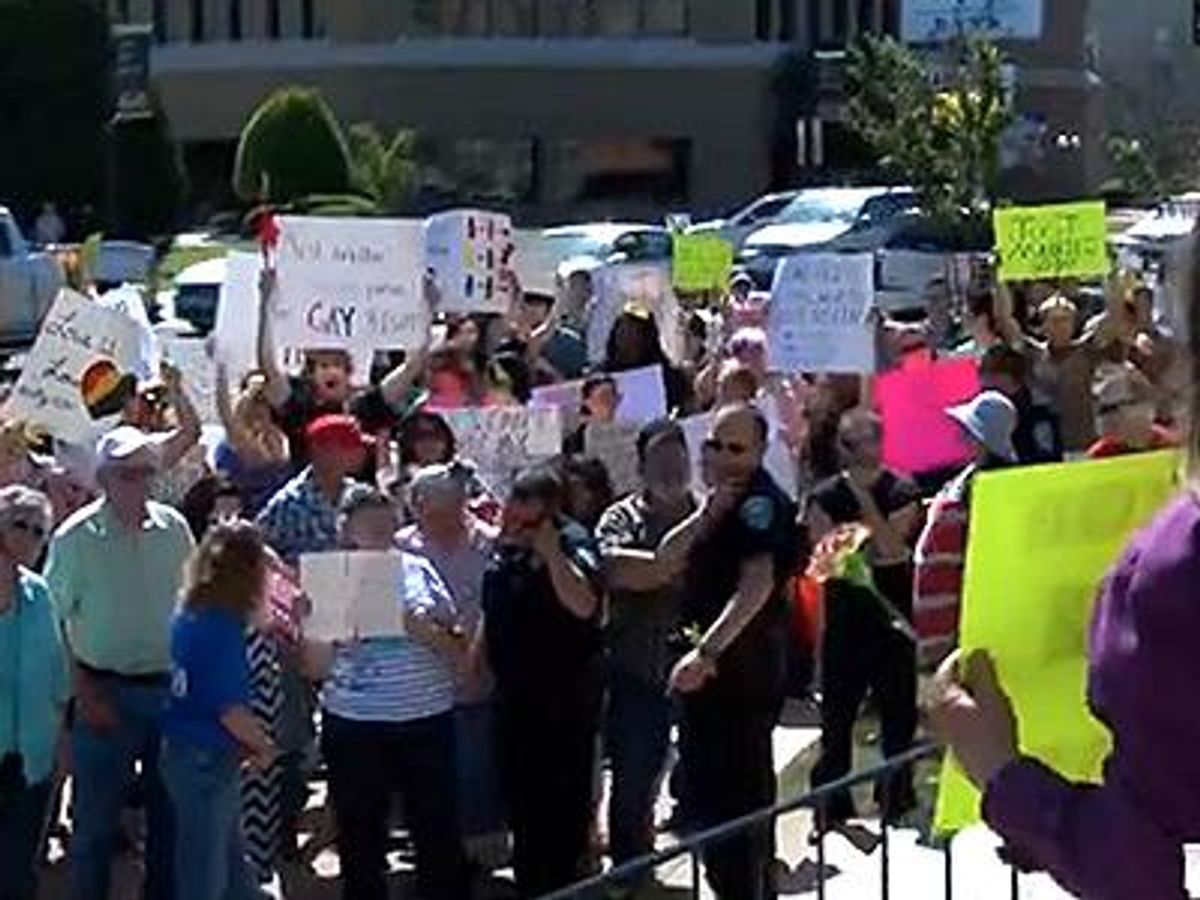 The Arkansas Times reports that over 200 people turned up to protest the antigay rally, far outnumbering the 30 antigay marchers, though some conservative outlets report the number of March for Marriage participants as high as 80.