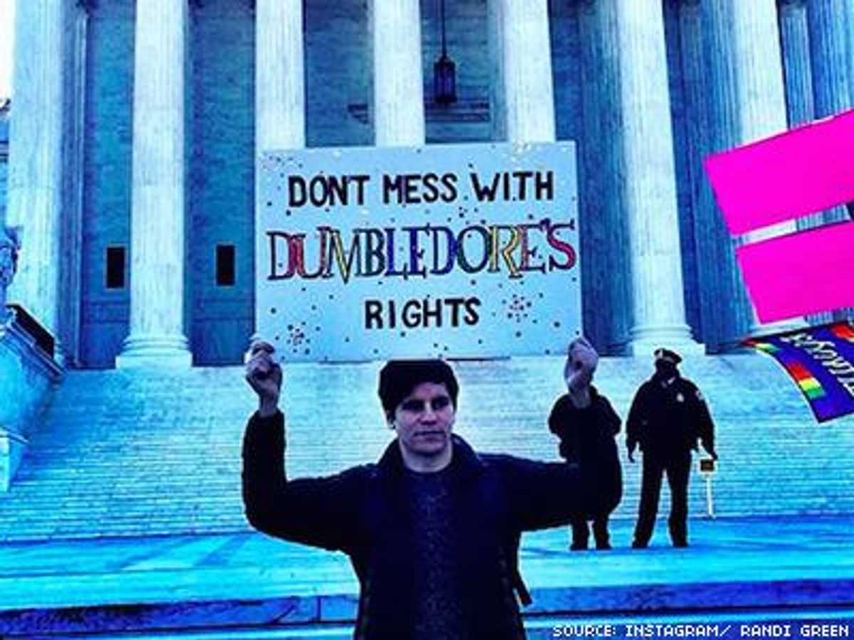 As expected, there were also a lot of antigay bigots outside the Supreme Court building, and inside -- one man had to be ejected from the courtroom itself for screaming "homosexuality is an abomination!" But pro-equality supporters fought back against the hate with love: