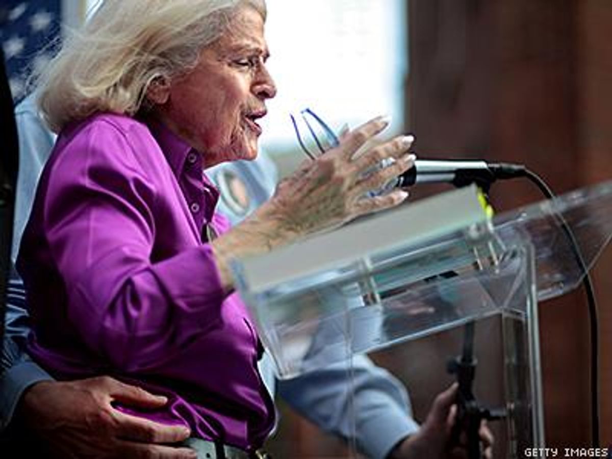 Windsor told the New Yorker she and Obergefell were introduced "at the A.C.L.U. cocktail party the other day." Both of them had nursed their spouses during terminal illnesses. "We started to talk and it wasn't five minutes before I started to cry. And Jim said, 'Stop! Stop!' And he started to cry, too."