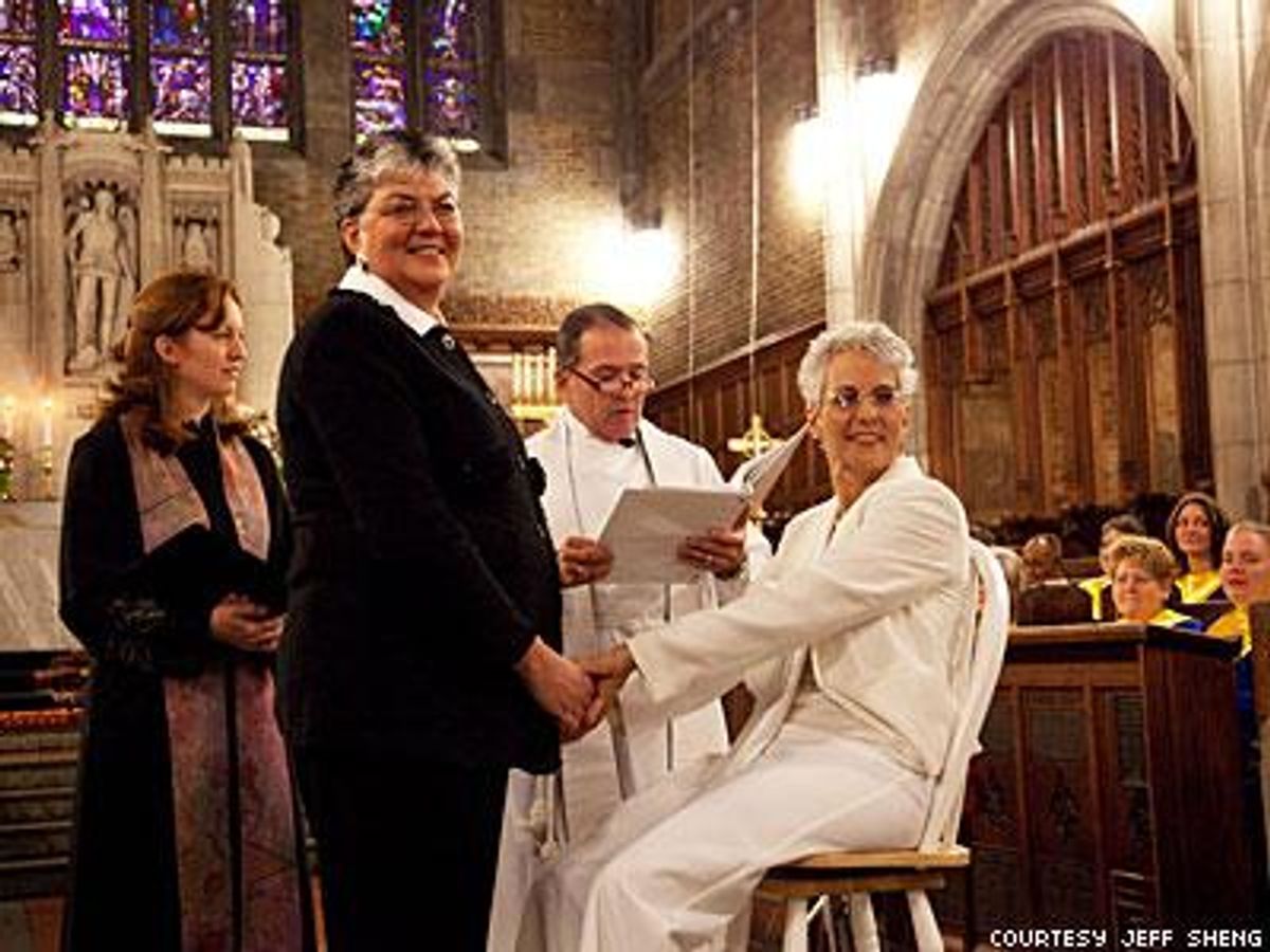 Fulton is a 53-year-old West Point alum, communications director for Outserve, and the first out gay member of the West Point Board of Visitors. She confirmed for the newspaper yesterday that the wedding would take place in the chapel today. Her fiance, Gnesin, is a 52-year-old breast cancer survivor with multiple sclerosis, which is one of the reasons the women decided they could not wait any longer for their home state of New Jersey to legalize marriage equality.
