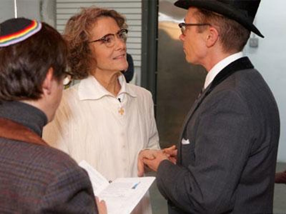 Liz Margolies legally married Scout, a transgender man who goes by one name, in New York at another symbolic location. They were married by a rabbi, according to the Huffington Post, at an old fur vault in Chelsea that is being converted to a sanctuary for a future LGBT congregation. Scout has shared that he attempted suicide while young and hopes the wedding inspires young people like him.