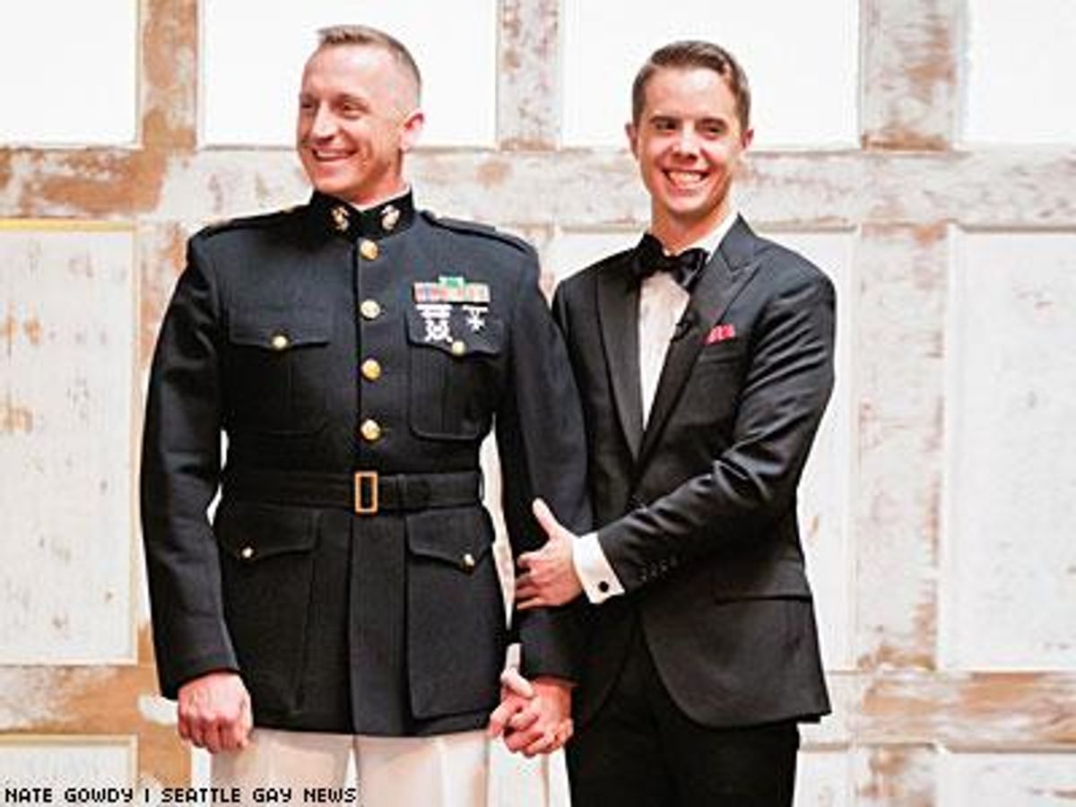 On Saturday, the couple officially tied the knot in a wedding ceremony full of laughter, tears, and gratitude. Photographer Nate Gowdy has shared a collection of photos from the couple's momentous day. Images of this kind just wouldn't have existed before the repeal of "don't ask, dont' tell."