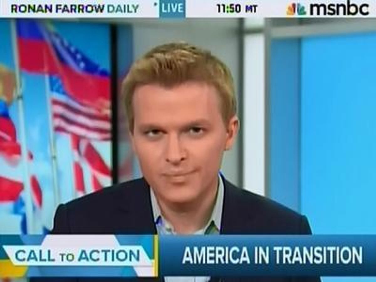 Farrow's show is reportedly tanking in the ratings. Calling it "largely a dud," The New York Times reported Sunday that Ronan Farrow Daily had ratings 51 percent lower than programming in the same time slot last year among viewers in the most desirable 25-to 54-year-old demographic. MSNBC, the Times added, has been suffering a network-wide slide that has affect even hits such as The Rachel Maddow Show and Morning Joe.