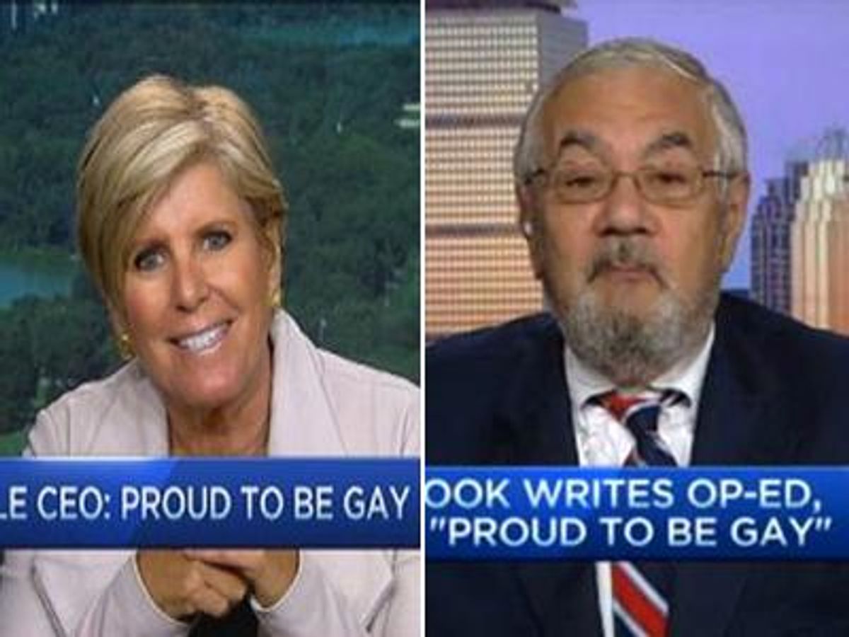 CNBC host Suze Orman, who came out seven years ago in a different situation -- because a reporter asked her if she was gay -- said Cook's coming-out shouldn't be an event, but it is, and will be good for him and others. "What I think is so great about this is ... it opens up a world of possibilities for those who haven't been able to accept the fact that they're gay," she said (watch the clip below). It will also make Cook a better executive, she said, because "he doesn't have to be ever afraid of anybody asking the question and how is he going to answer it. Everything that everybody needs to know about him is out in the open now. She added that she had no negative repercussions from her coming-out."