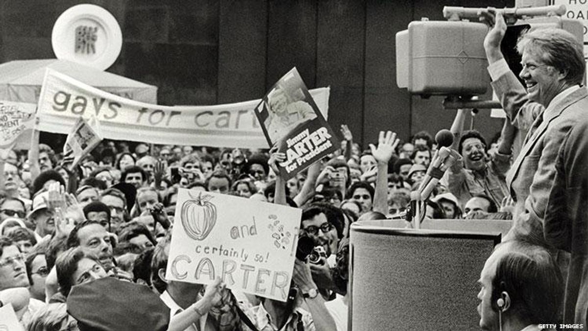 Carter, who identifies as a "born-again" Christian, is proof that deep religious faith need not go hand in hand with homophobia. In 1976, as a candidate, he had made it clear he would sign a gay rights bill, and in 1977, during his presidency, the first-ever gay and lesbian delegation visited the White House to discuss policy issues with administration officials. In 1978, on a visit to California, he urged voters to defeat Proposition 6, a.k.a. the Briggs Initiative, which would have barred gays and lesbians from teaching in the state's public schools -- and the proposition was indeed voted down. When he ran for reelection in 1980, he agreed to a gay rights plank in the Democratic Party platform, a first. Since leaving the White House, he has been a prominent activist in support of many human rights causes, including LGBT rights. He has disassociated himself from the Southern Baptist Convention, after attending Southern Baptist churches for most of his life, because of the denomination's anti-LGBT stances and unequal treatment of women. He has famously said, "I never knew of any word or action of Jesus Christ that discriminated against anyone," and has endorsed marriage equality.