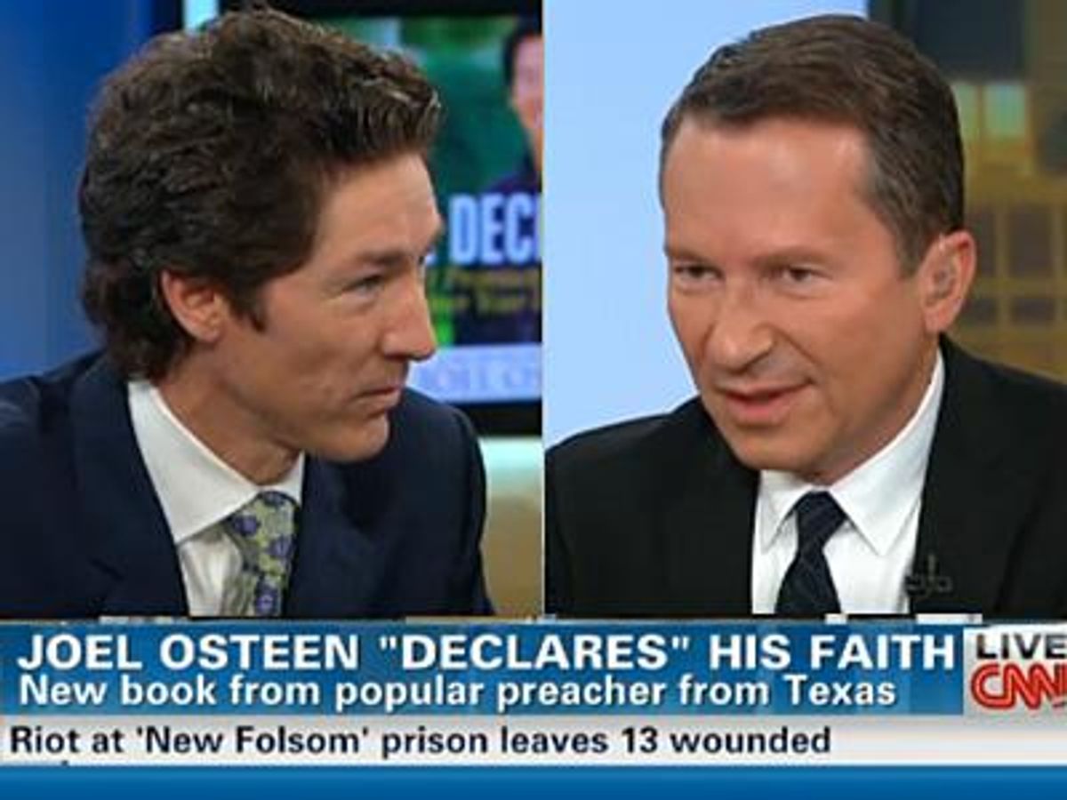 Conservative pastor Joel Osteen told CNN's Soledad O'Brien today that he didn't choose to be straight, saying, "I just feel like that's who I am." The pastor, who leads a 45,000-member megachurch in Texas and believes the Bible condemns same-sex love, appeared on CNN's Starting Point this morning with New Yorker writer and former Bill Clinton adviser Richard Socarides.