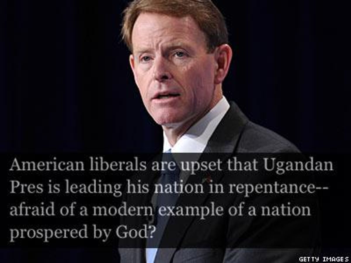 "American liberals are upset that Ugandan Pres is leading his nation in repentance -- afraid of a modern example of a nation prospered by God," the FRC's Tony Perkins tweeted on Monday.