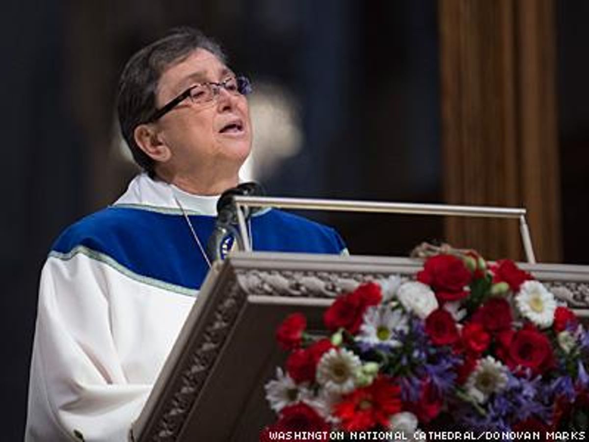 The Reverend Elder Nancy L. Wilson, moderator of the Universal Fellowship of Metropolitan Community Churches, a largely LGBT denomination, gave the first reading of Scripture, a passage from the book of Isaiah, at this morning's event. She was one of a diverse group of interfaith clergy to participate in the service, which was attended by President Obama and Vice President Biden.