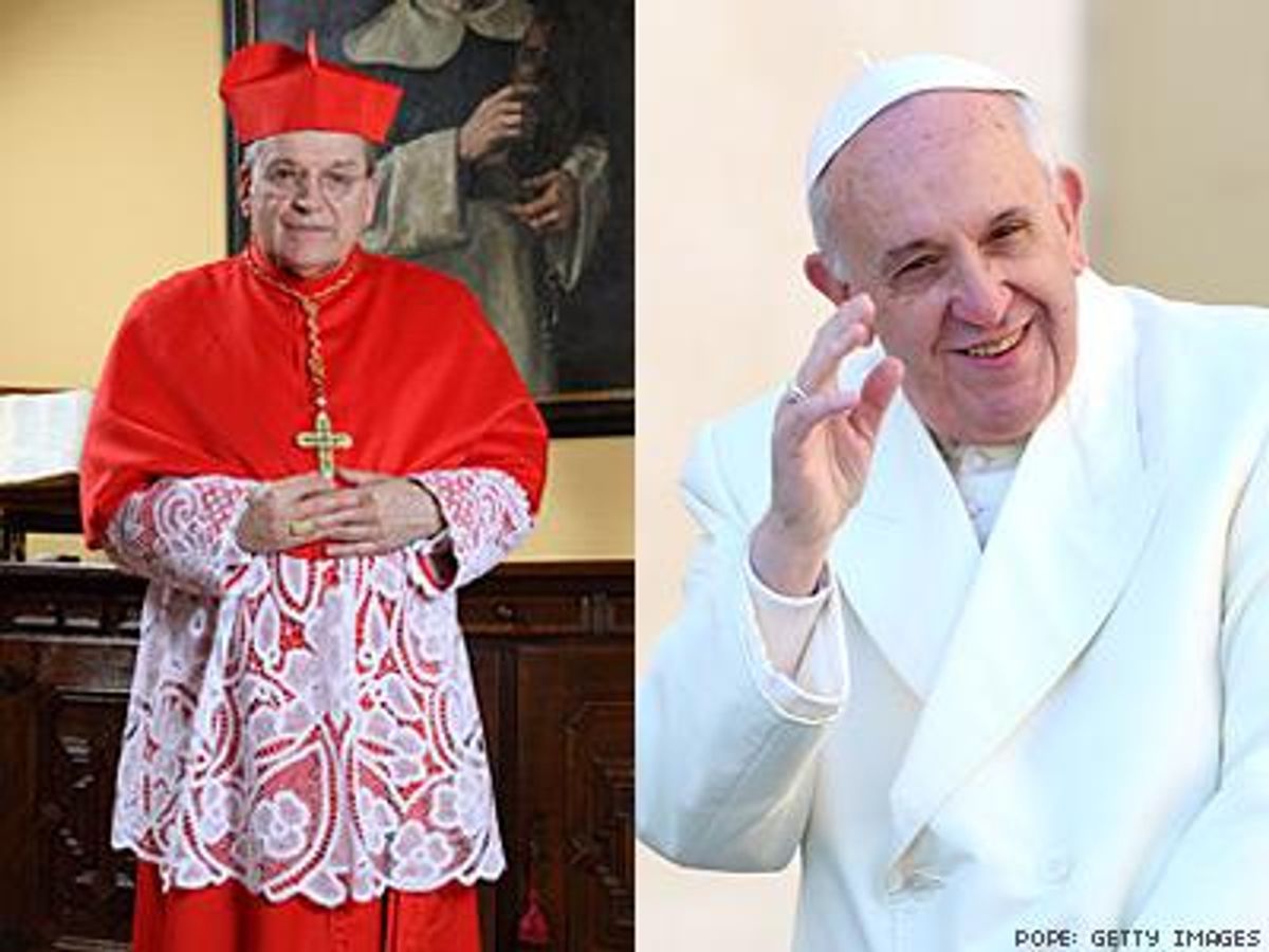 Burke recently gave an interview to Catholic broadcaster EWTN in which he appeared to question Pope Francis's recommendation that church leaders reduce their emphasis on opposition to abortion, contraception, and same-sex marriage. "One gets the impression, or it's interpreted this way in the media, that [the pope] thinks we're talking too much about abortion, too much about the integrity of marriage as between one man and one woman," Burke told the network. "But we can never talk enough about that."