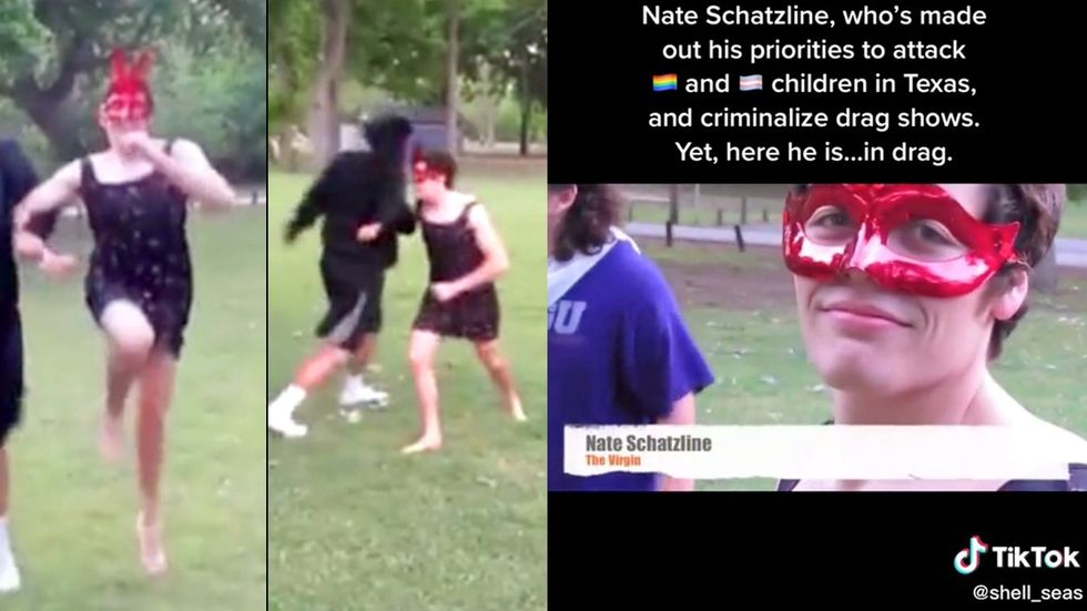 Schatzline ended his video with a bizarre challenge to his followers. Regarding what Republicans have made their primary issue in GOP-controlled states nationwide — banning drag queens and erasing trans — the Texas lawmaker had a bizarre challenge.