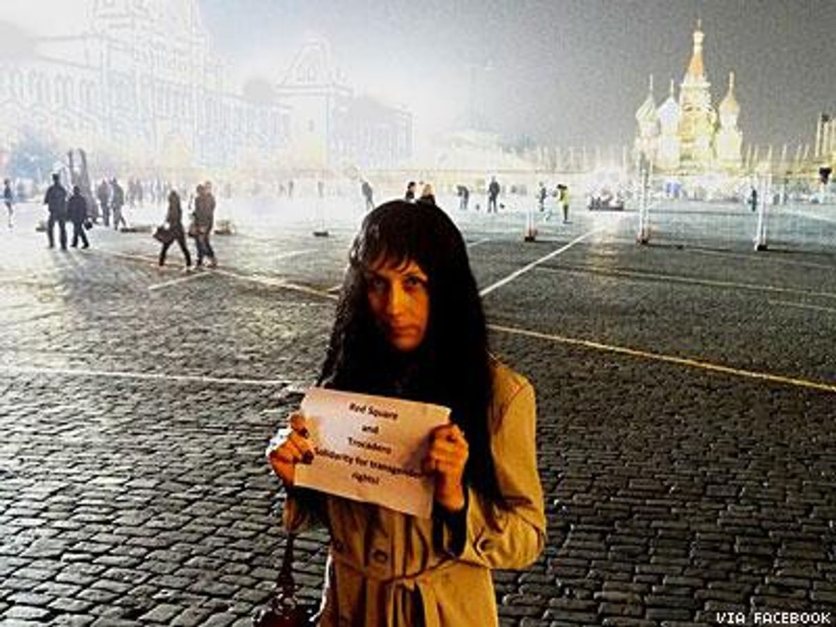 And last week the Moscow-based lawyer's fight for human rights took a personal tone, as she announced that she is a bisexual transgender woman. Bast, who is married to another Russian woman, said she decided to come out now to protest the nationwide ban on "propaganda of nontraditional sexual relations," passed this summer. Since the law, modeled after similar local legislation, passed the nation's parliament unanimously, LGBT Russians and visitors have been beaten, kidnapped, arrested, and silenced in what amounts to a ban on LGBT identities in any public or private space that might be accesible to minors.