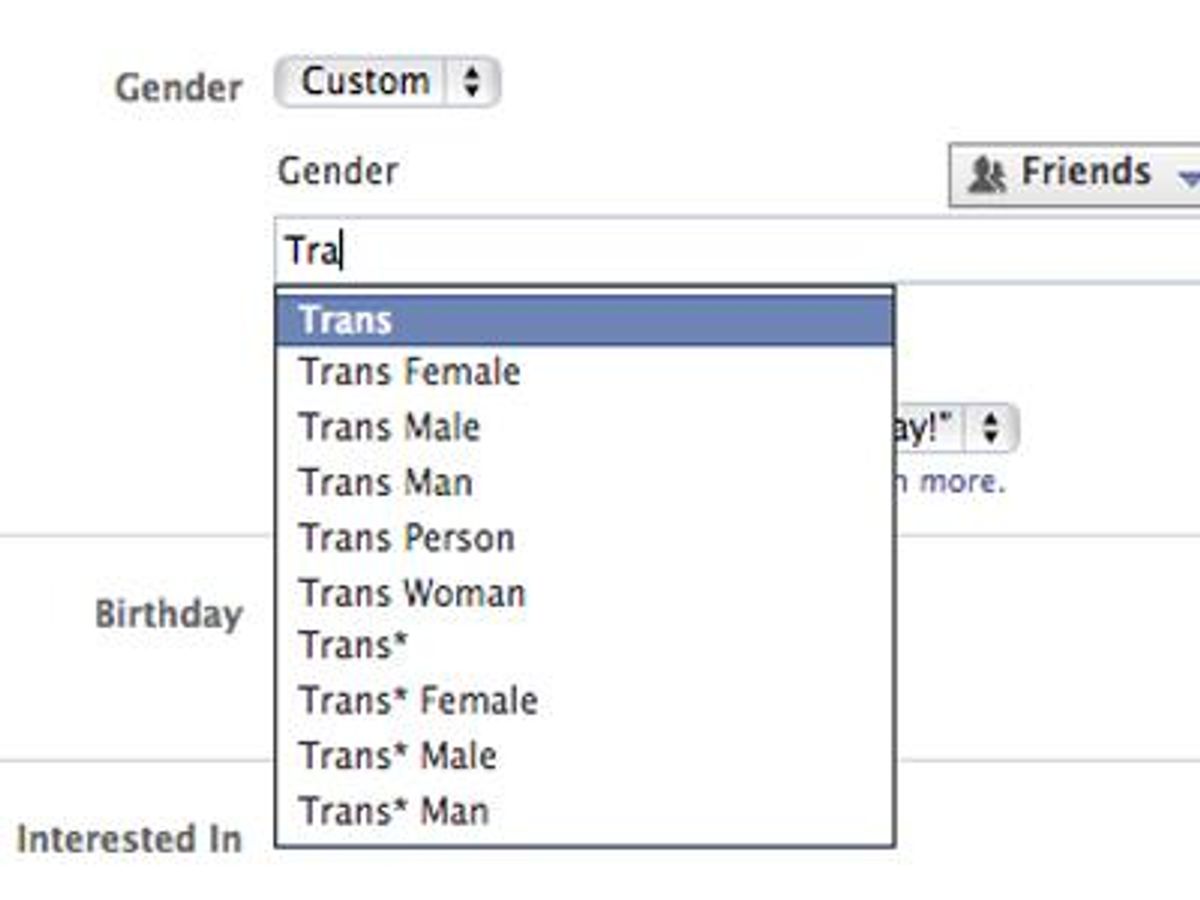 In addition to being able to select from "male," "female," or "gender-neutral" pronouns, users can now enter their gender as they see fit. "Androgyne," "Pangender," "Bi-gender," "Agender," "Trans Woman," "Transsexual," "Trans* Man," "Cis woman," and dozens of other gender-identifying options are now available to users by selecting the "custom" option in the profile's "Basic Information" section. The new gender identity listing also has a built-in privacy setting, allowing users to determine who is able to view their gender identity when looking at their profile.