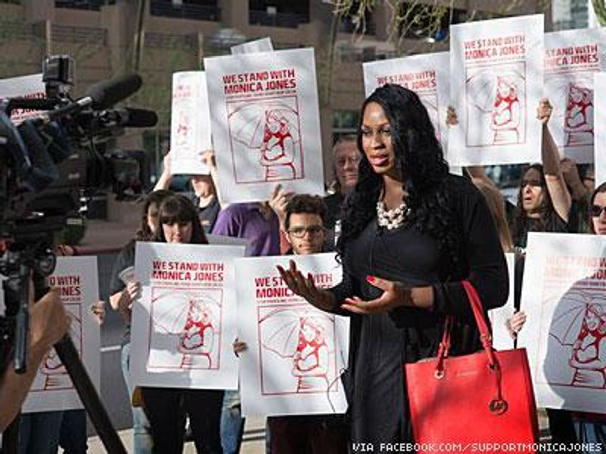Monica Jones is not a sex worker. She is a student at Arizona State University, a black transgender woman, and an advocate for sex workers who volunteers her time with the Sex Workers Outreach Project in Phoenix. But according to local law, Jones's behavior -- walking down the street and engaging others in conversation -- is criminal. Jones was convicted of "manifesting prostitution"Friday by a Phoenix judge, reports The Arizona Republic. Jones pleaded not guilty and said she intends to appeal the decision.