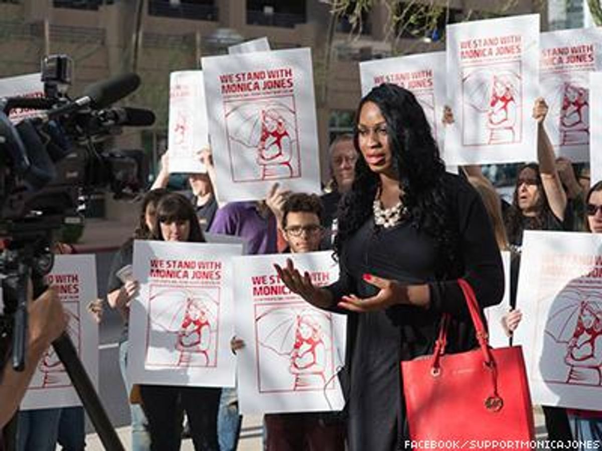 Sex workers' rights activist and social work student Monica Jones, who's still fighting a U.S. 'manifesting prostitution' charge she considers biased and unconstitutional, has been unable to find reprieve from criminalization by traveling abroad to continue her college education.