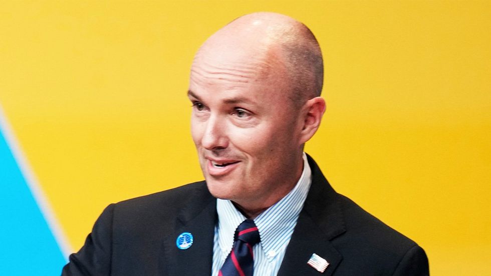 Utah Gov. Spencer Cox speaks during the 142nd IOC session at the 2024 Summer Olympics on July 24, 2024 in Paris, France.