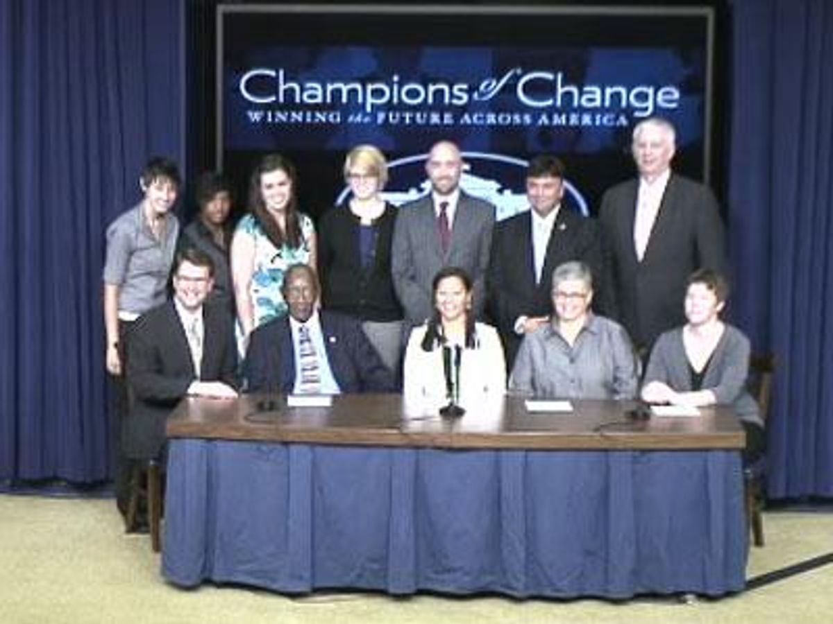 The Champions of Change program, part of President Barack Obama's Winning the Future initiative, brings a group of leaders on different policy challenges facing the country to the White House each week. Past LGBT honorees have included the Gay, Lesbian, and Straight Education Network for its work against bullying, Cleve Jones for his efforts to fight HIV/AIDS, and Carl Siciliano of the Ali Forney Center for his support of homeless and runaway youths.