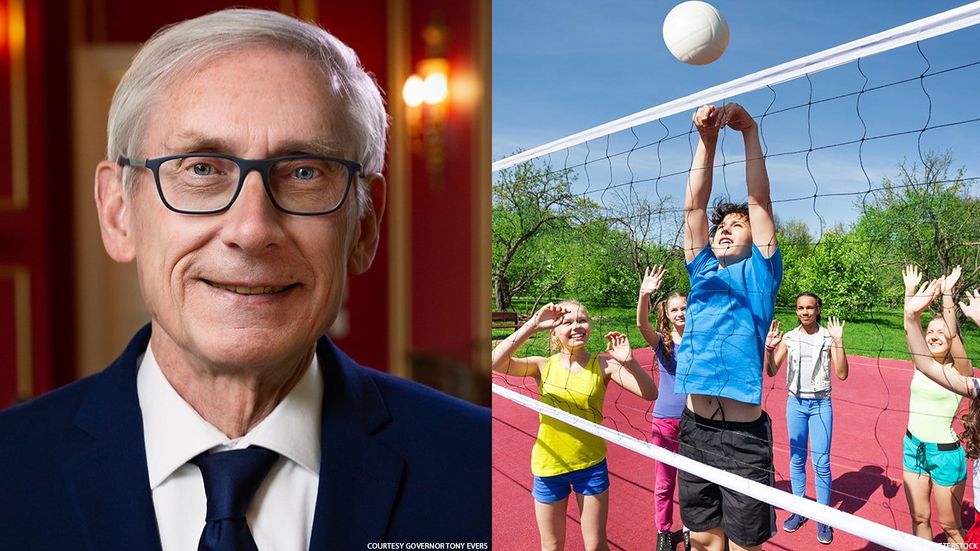 Pictured: Wisconsin Gov. Tony Evers and young volleyball players