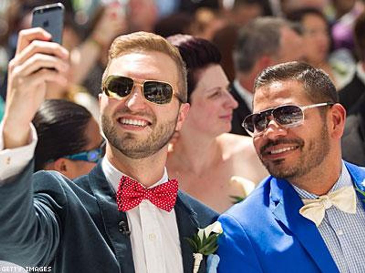 More than 100 same-sex couples tied the knot at a mass gay wedding at Casa Loma in Toronto, Canada, on June 26. The Grand Pride Wedding was part of the World Pride festival running in the city this week.