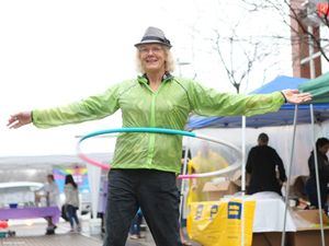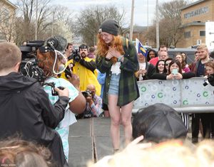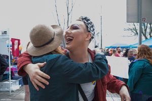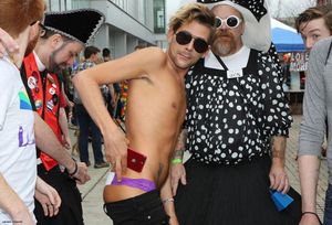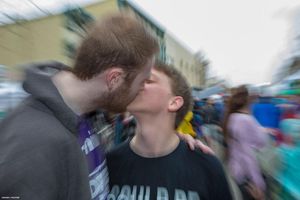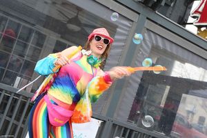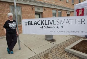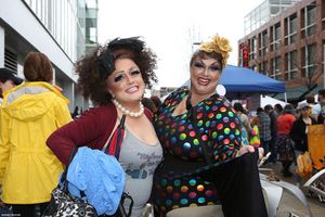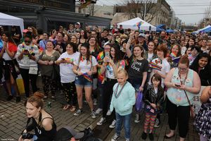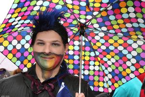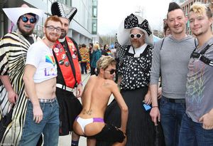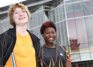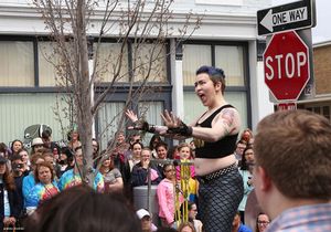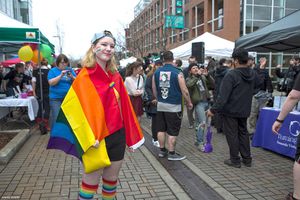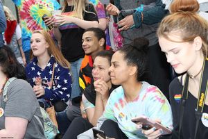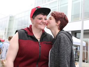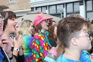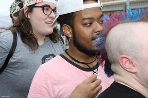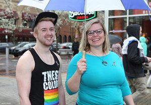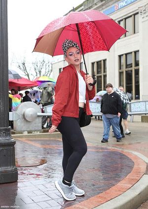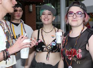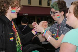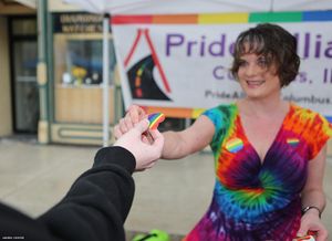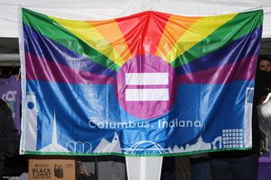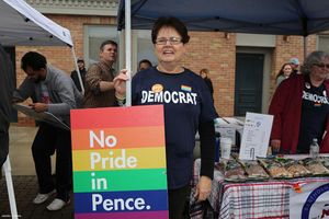 What started as a high school project for Erin Bailey (pictured above) soon grew out of the one-block festival that she had originally intended. More than 2,000 people showed up Saturday in spite of the rain to have a rainbow-drenched day of joy and Pride in homophobic Vice President Mike Pence's hometown, Columbus, Ind., The Indianapolis Star reports.