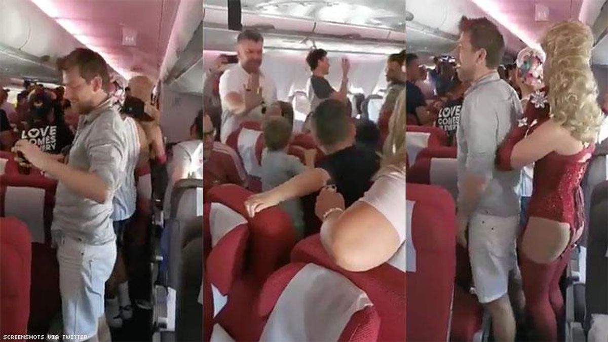 The flight featured talent including Unbreakable Kimmy Schmidt's Tituss Burgess and RuPaul's Drag Race star Courtney Act and was staffed entirely with people who identify under the LGBTQ umbrella.