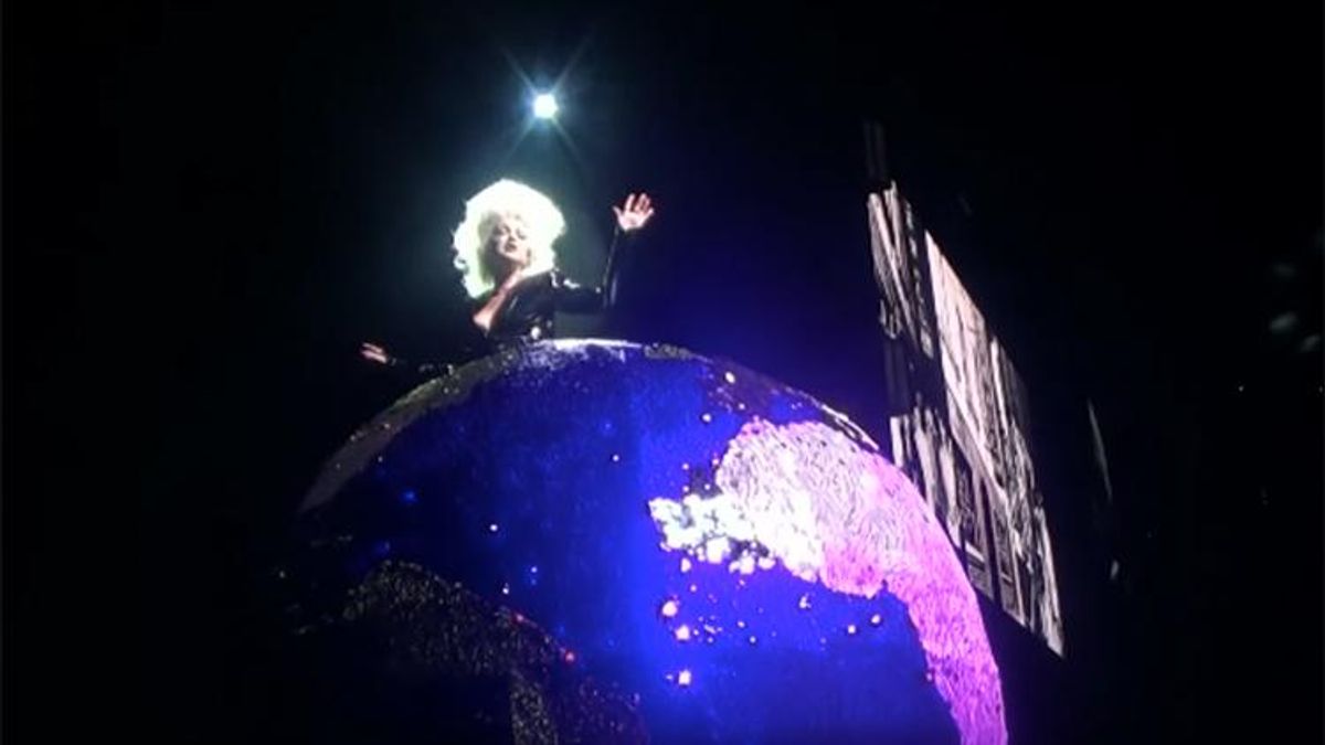 Emerging out of a giant turning globe, Lauper belts the inclusive message of "True Colors" -- embracing your true, beautiful self. Afterward, the Emmy-, Grammy- and Tony-winner ditched the globe as a dance-ified remix kicked the energy up a notch.