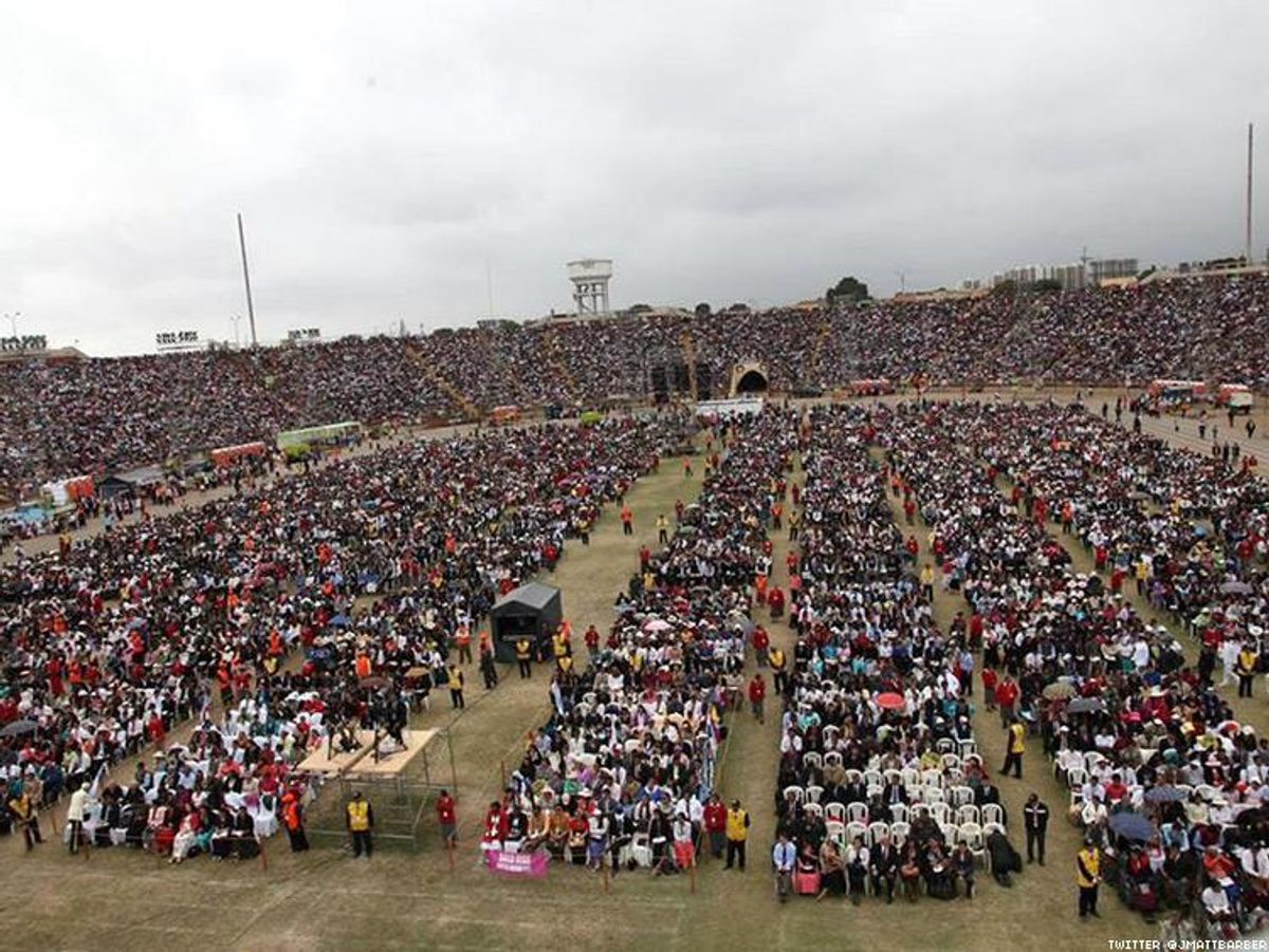 "Internet sleuths, including Twitter user @DCHomos, quickly identified the stadium as the Estadio Universidad Nacional Mayor San Marcos at the National University of San Marcos" in Lima, Ford writes. "Then, a number of videos seemed to quickly confirm that the image shared by Staver and Barber was from the 2014 convention organized by the pentecostal Movimiento Misionero Mundial (Worldwide Missionary Movement)." That convention came long before Davis's moment of fame.