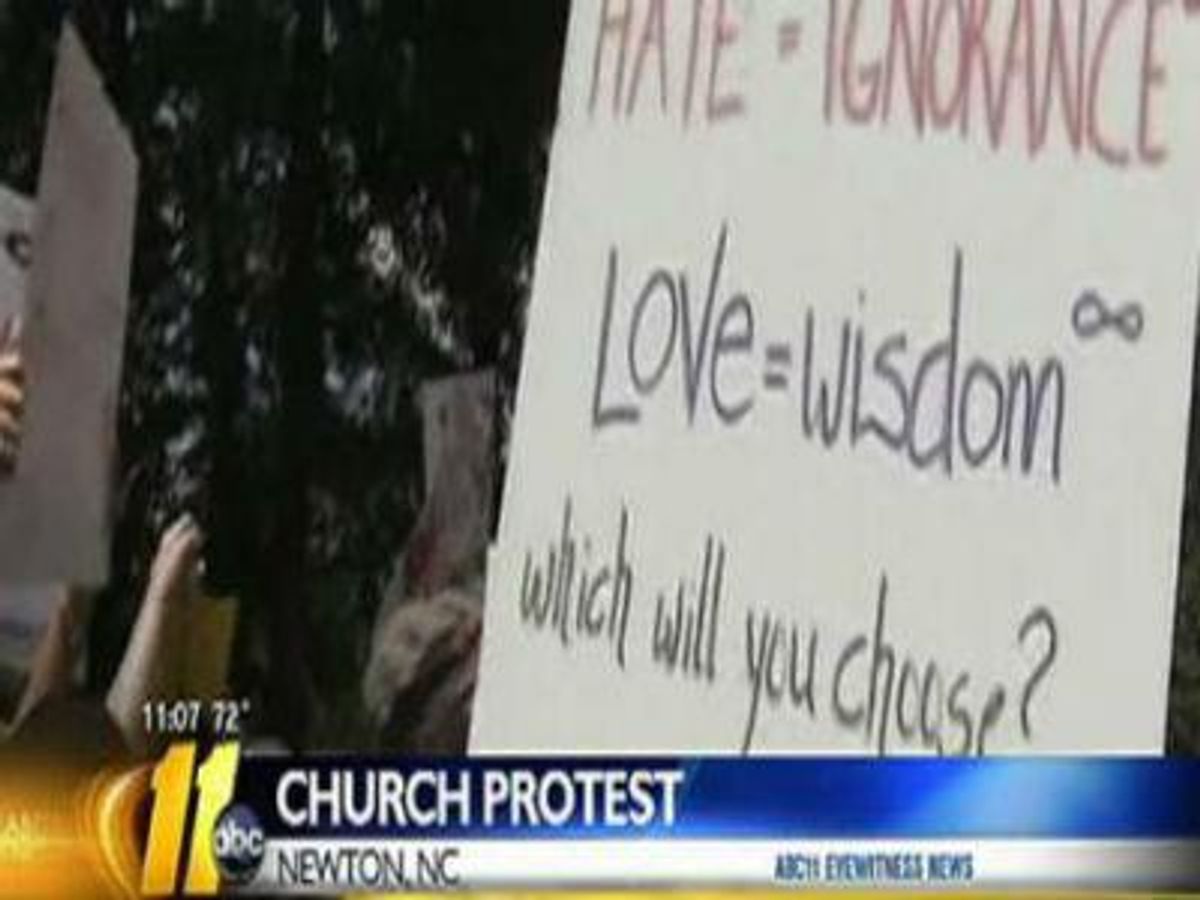 The demonstrators were objecting to a Mother's Day sermon by Providence Road Baptist Church pastor Charles Worley, who advocated putting gays and lesbians in concentration camp-style settings. Video of the message went viral online.