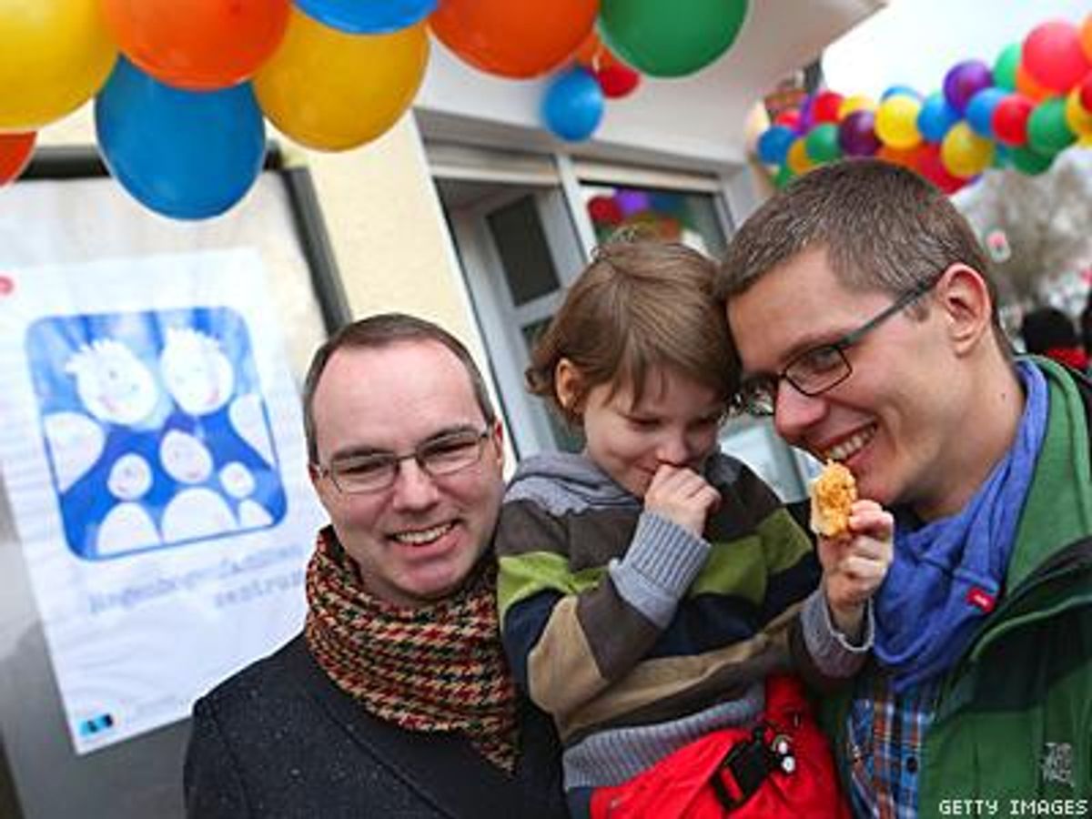 Lesbian couple Daniela Kuehling (left) and Emina Sadikovic, who have a 12-year-old daughter, attended the opening of Germany's first LGBT parent counseling center on March 15 in Berlin. The Regenbogenfamilien Zentrum (which translates to Rainbow Families Center) will provide counseling and other services to families with gay, lesbian, bisexual, and transgender parents. Same-sex marriage is legal in Germany though same-sex couples are not entitled to the same full legal rights as heterosexual couples, and the issue of child adoption by gay couples remains legally somewhat complicated. (Photo by Sean Gallup/Getty Images)