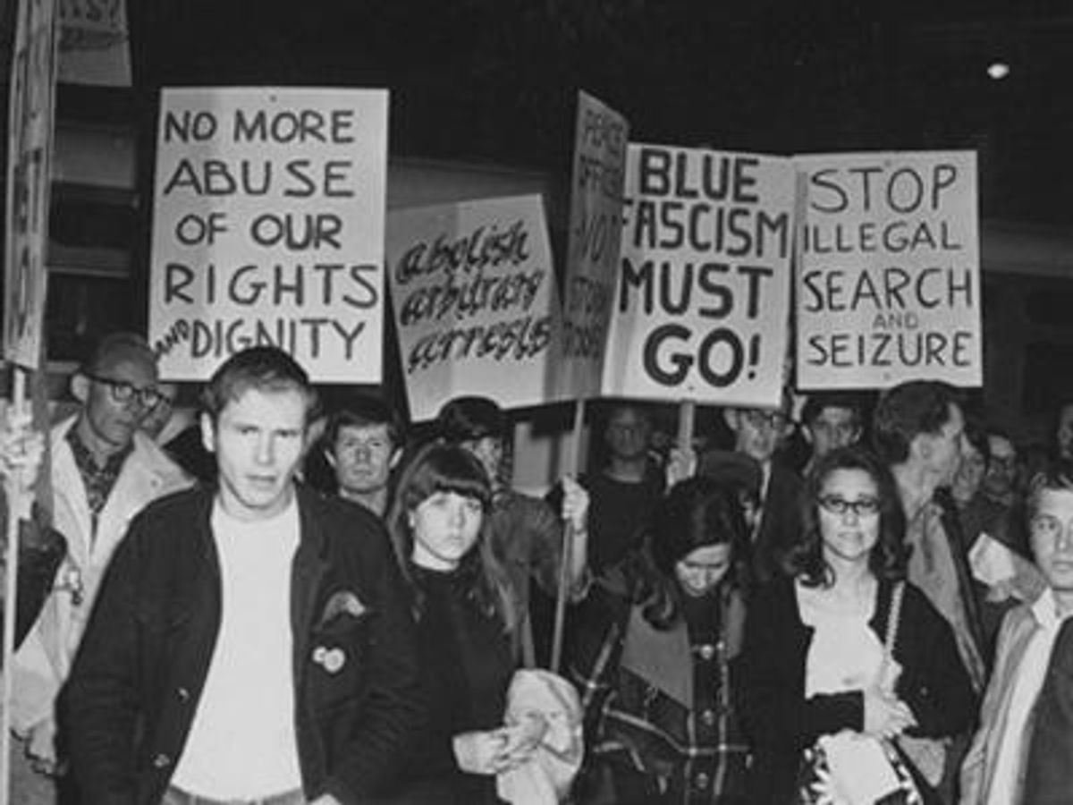 In 1967, PRIDE (Personal Rights in Defense and Education) led hundreds in protest of a police raid on the Black Cat bar in Los Angeles that left numerous patrons injured and a bartender in critical condition. Photo Courtesy of ONE National Gay & Lesbian Archives at USC Libraries