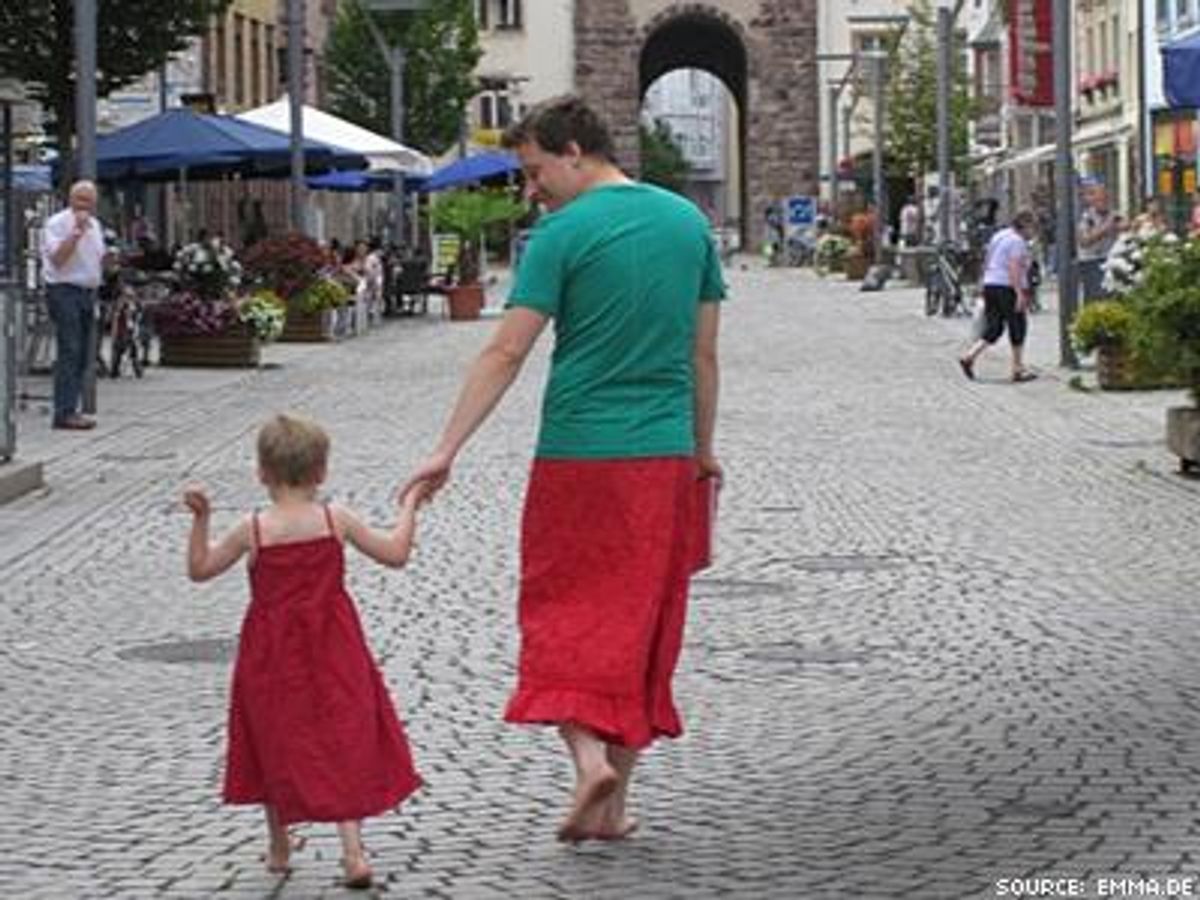Nils Pickert and his family moved from West Berlin to a more traditional village in southern Germany, Gawker reports. After Pickert's son expressed worries that other kids at school would mock him for wearing dresses, his father decided to also don a dress in solidarity.