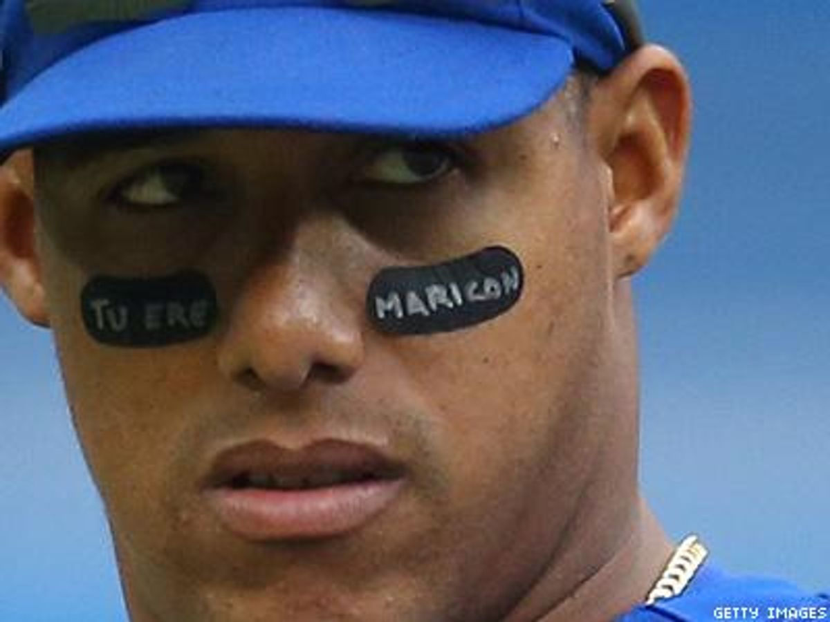 The shortstop was slapped with a three-game suspension today after wearing eyeblack during a Boston Red Sox game on Saturday with the words, "Tu Ere Maricon," written in white across the black smudges. The Spanish-to-English translation of the phrase is essentially, "You are a f****t."