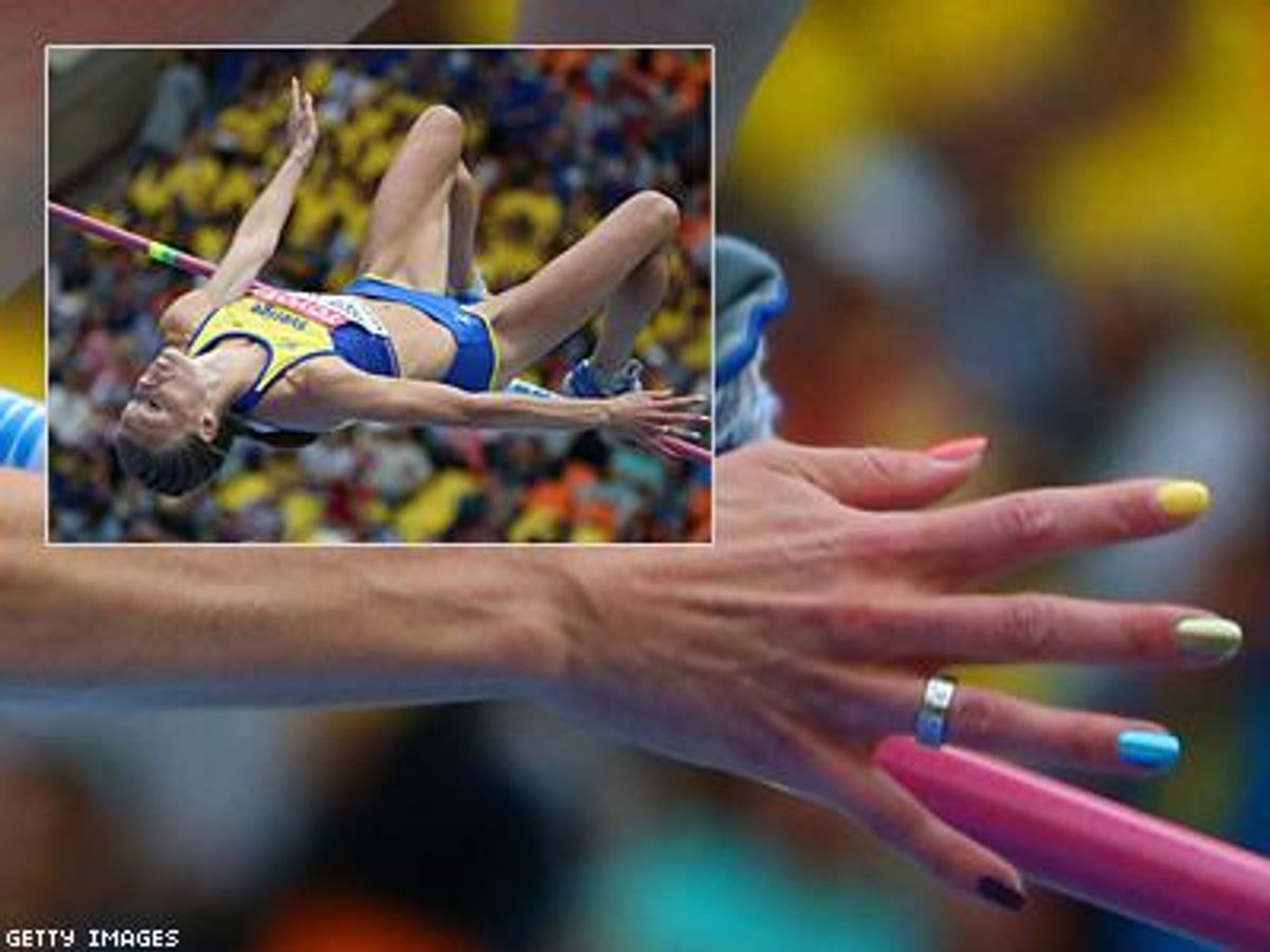 High jumper Emma Green Tregaro posted a photo of her technicolor nails to Instagram Thursday, adding the caption "Nails painted in the colors of the rainbow. #pride #Moscow2013"