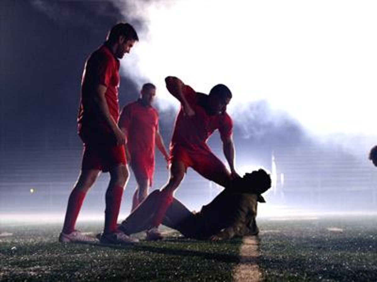 Titled "Russia Declares Discrimination Newest Olympic Sport," the video juxtaposes scenes of a same-sex proposal with menacing athletes on a sports playing field. The joyous moment between the two men is cut short when they are suddenly thrust into the arena, where they experience violence at the hands of the players.