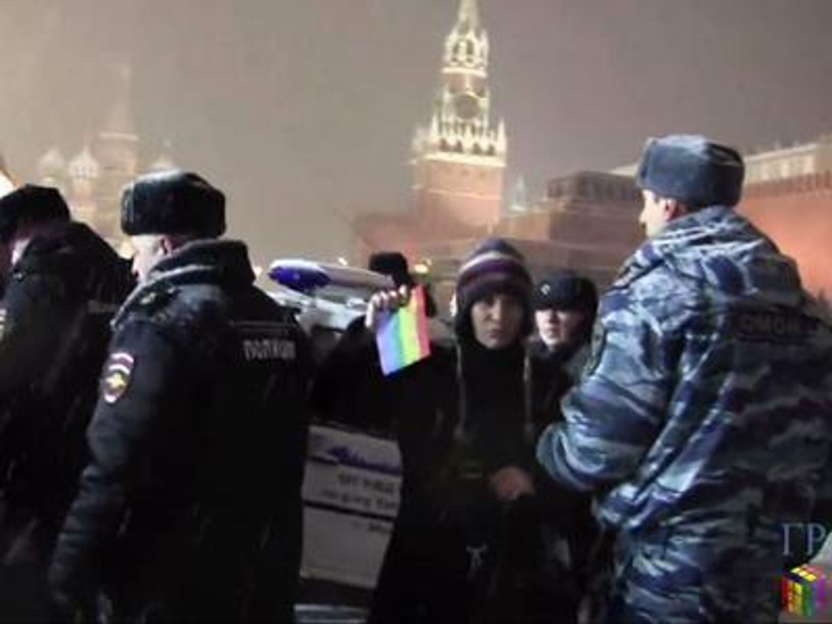 Gavrikov posted this video of the activists being detained as they sang the Russian National Anthem, apparently filmed by LGBT site Grani.ru: