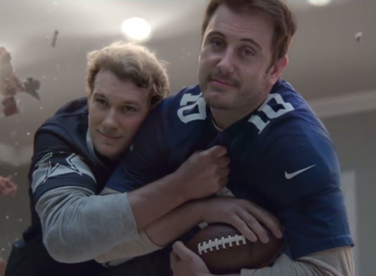 As Cyd Zeigler at OutSports notes, the ad was all but certainly filmed before the regular season began, but one of the men in the ad is wearing a Dallas Cowboys jersey -- which happens to be the team that just signed out defensive end Michael Sam to its practice team.