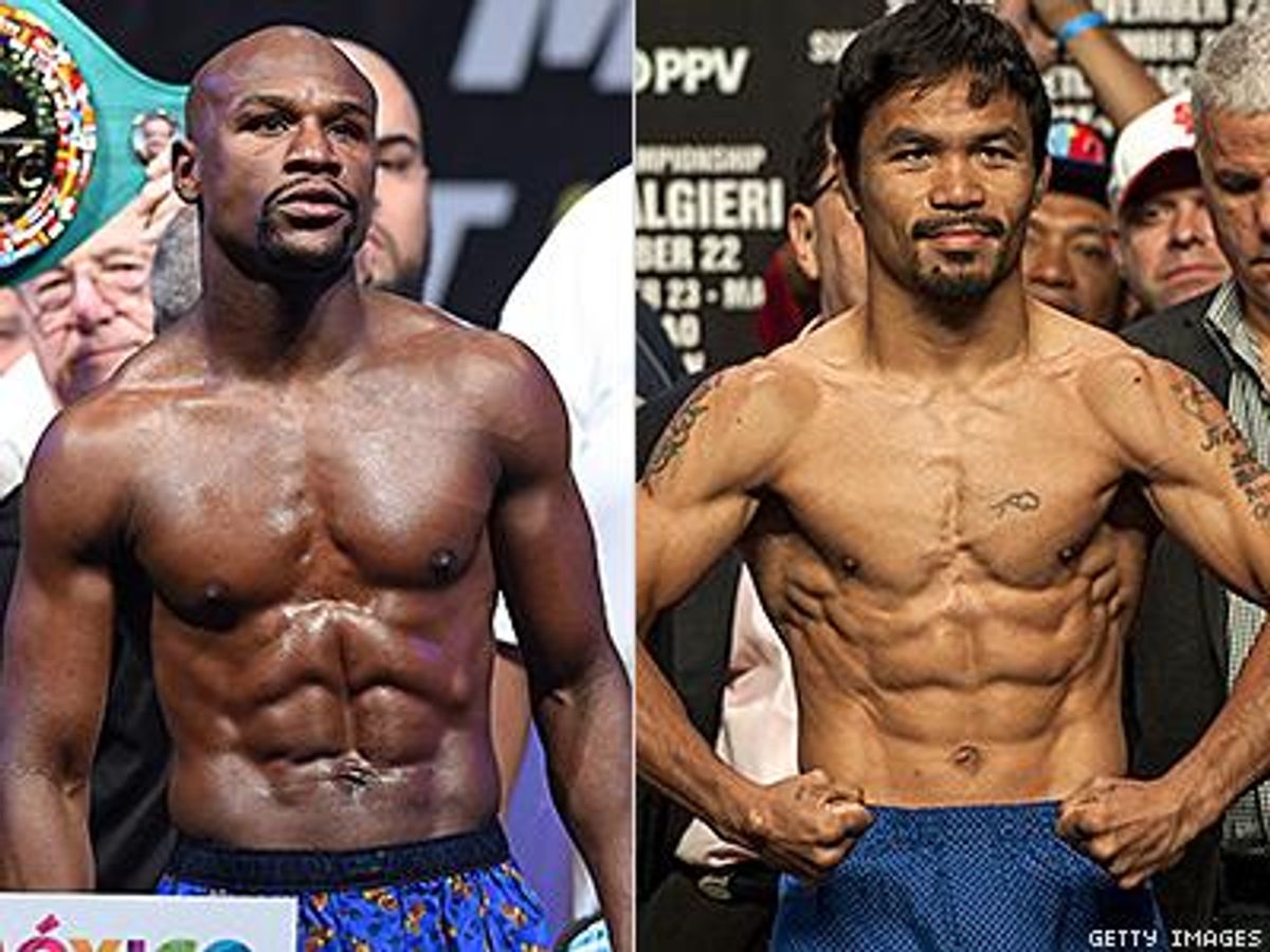 The $300-million fight between Mayweather and Pacquiao is scheduled for Saturday, May 2 at 11:30 p.m. Eastern at the MGM Grand Garden Arena. The match is available to watch on HBO and Showtime pay-per-view.