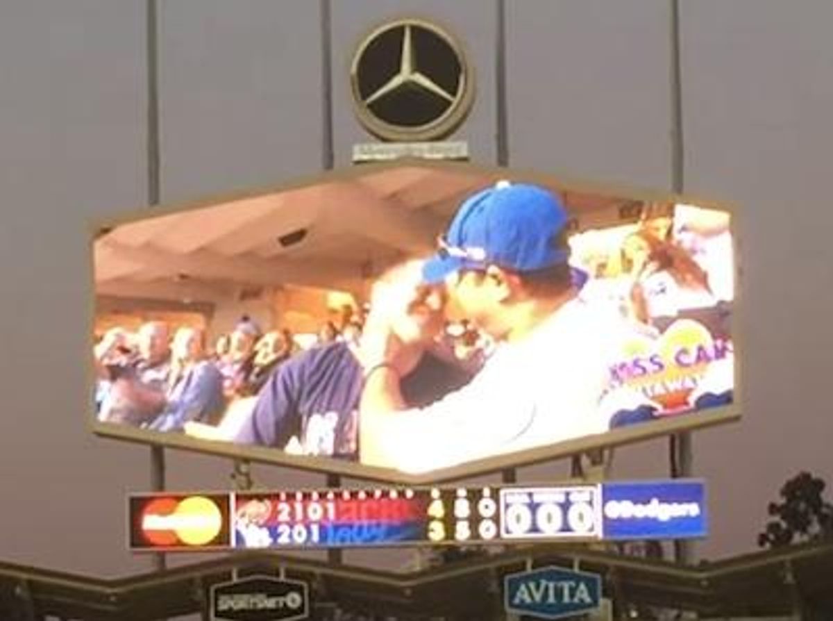 The Los Angeles Dodgers' 6-4 victory over the Arizona Diamondbacks wasn't the only thing that had Dodger Stadium cheering Saturday -- a same-sex couple shared a smooch during the Kiss Cam that had the crowd roaring.
