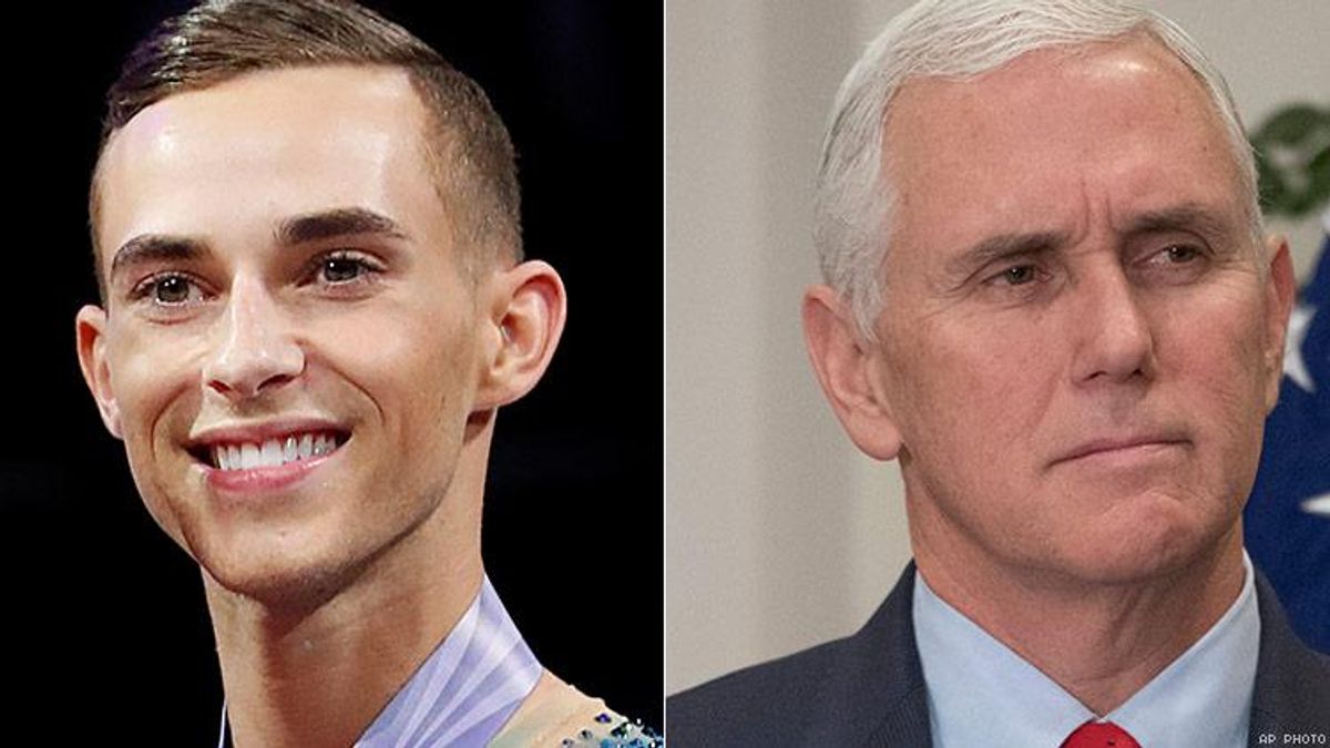In an interview with USA Today this week, figure skater Rippon said he's not eager to meet Pence, "the same Mike Pence that funded gay conversion therapy." He added, "If it were before my event, I would absolutely not go out of my way to meet somebody who I felt has gone out of their way to not only show that they aren't a friend of a gay person but that they think that they're sick."
